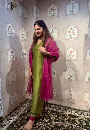 Mehendi Green Kurta Set with Sheer Pink Dupatta