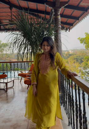 Mustard Yellow Handwoven Chanderi Kurta Set