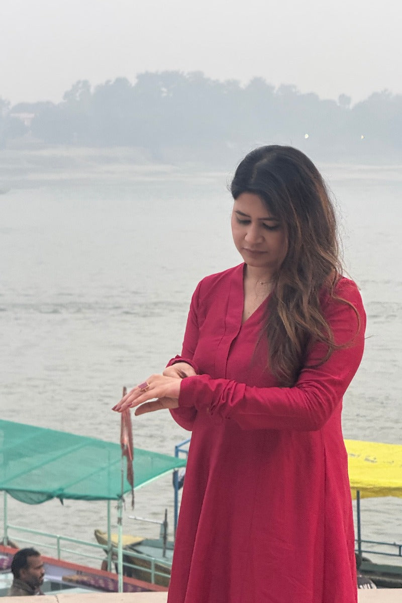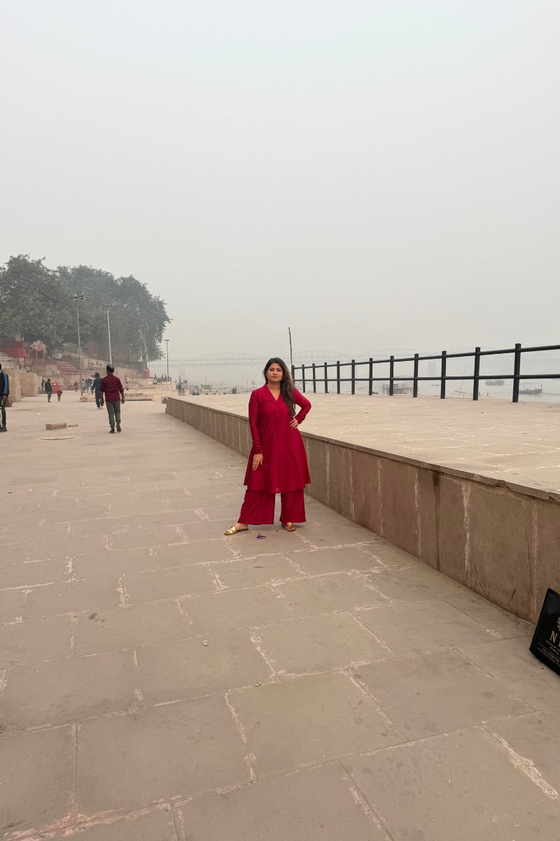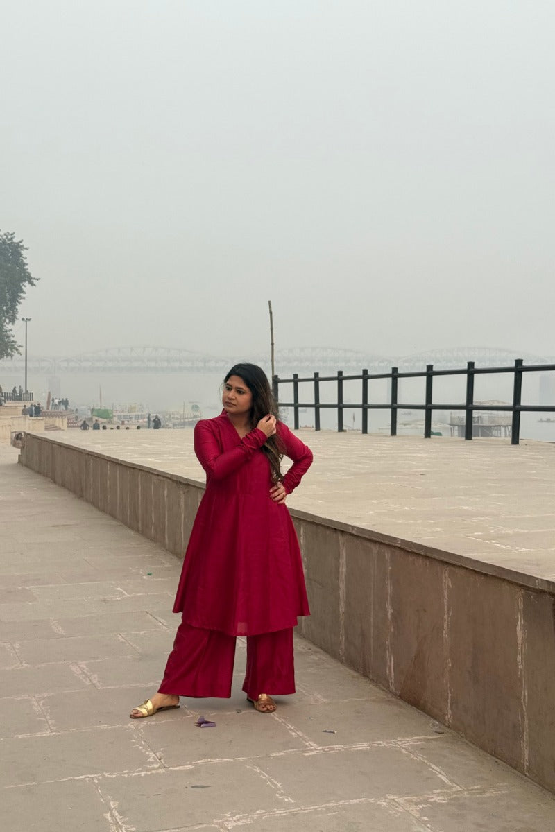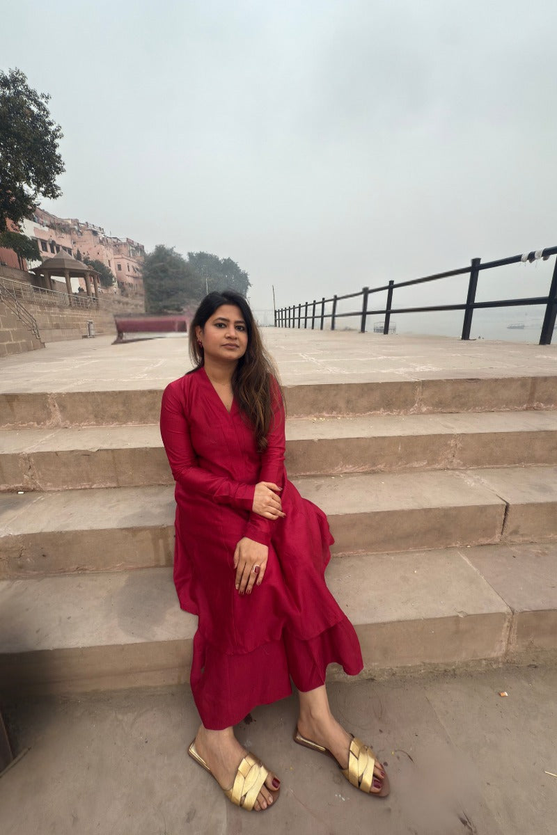 Crafted in pure handwoven Chanderi fabric, this Crimson Rose kurta set features a soft, fluid drape with a subtle natural sheen. Designed for effortless elegance, the relaxed silhouette offers comfort while maintaining a graceful fall. Paired with a tonal dupatta, this ensemble is perfect for festive gatherings, day occasions, and understated celebrations. roduct Details